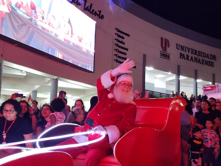 A estrutura montada na fachada da Unipar contou com iluminação e decoração temática de Natal. O encerramento teve a chegada do Papai Noel, que cumprimentou o público e posou para fotos com as famílias presentes. Para a estudante Clara Isabele, da Escola Maria Augusta, integrante do coral, participar do espetáculo foi emocionante. “É muito legal sentir a sensação de todos os familiares estarem nos vendo e nos gravando”, afirmou.