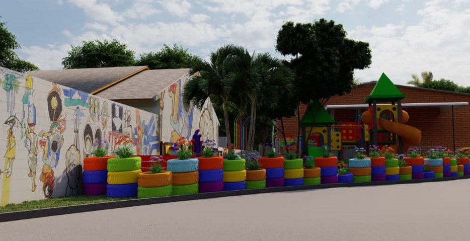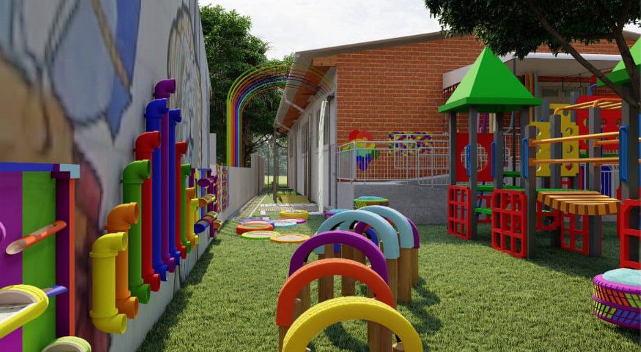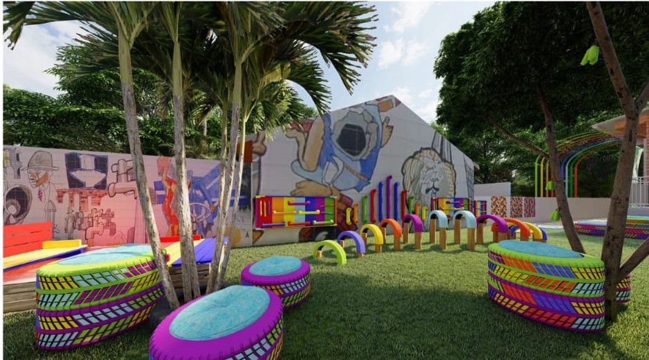 Outro trabalho também confeccionado pelo estudante foi o playground sensorial, para o núcleo dos educandos com transtorno do espectro autista. Uma proposta arrojada que mescla play padrão com jardim e brinquedos sensoriais.