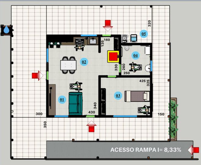 “Tanto o dimensionamento da casa como sua posição criam opções de outras utilizações, aproveitando a vegetação existente para criar áreas de sombra para outras atividades”, explicou o aluno, agradecendo a parceria da acadêmica Danielly de Souza Peleck, nesta parte do projeto.