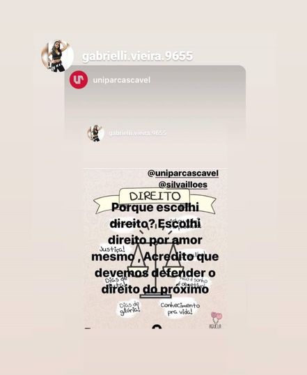 “Escolhi o Direito por amor. Acredito que devemos defender o direito do próximo” (Gabrielli Vieira).