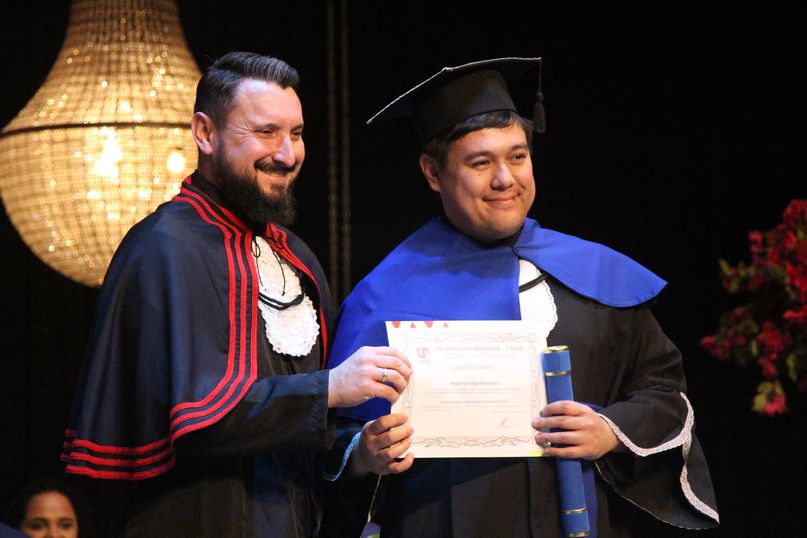 Acadêmicos dos cursos dos núcleos de Ciências Exatas e Tecnológicas, Ciências Humanas e Educação, Ciências Sociais Aplicadas, Design, Saúde, Meio Ambiente e Lazer da modalidade de Ensino a Distância (EaD) e Semipresencial da Universidade Paranaense (Unipar) participaram, na noite de terça-feira (12), da cerimônia de Colação de Grau. Ao todo, 165 alunos formandos, oriundos de polos situados nos estados do Paraná, Mato Grosso do Sul e São Paulo, receberam seus diplomas.