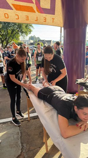 A liberação miofascial, conforme Indiomara, consiste na aplicação de pressão em pontos de tensão muscular para ajustar a fáscia — tecido que recobre os músculos. A professora ressaltou ainda que a atuação dos acadêmicos durante o evento foi fundamental para evitar complicações imediatas, como dores, cãibras e fadiga muscular. "Após exercícios intensos, as técnicas fisioterapêuticas ajudam a reduzir os marcadores de lesão muscular no sangue e também a dor muscular tardia", completou.
