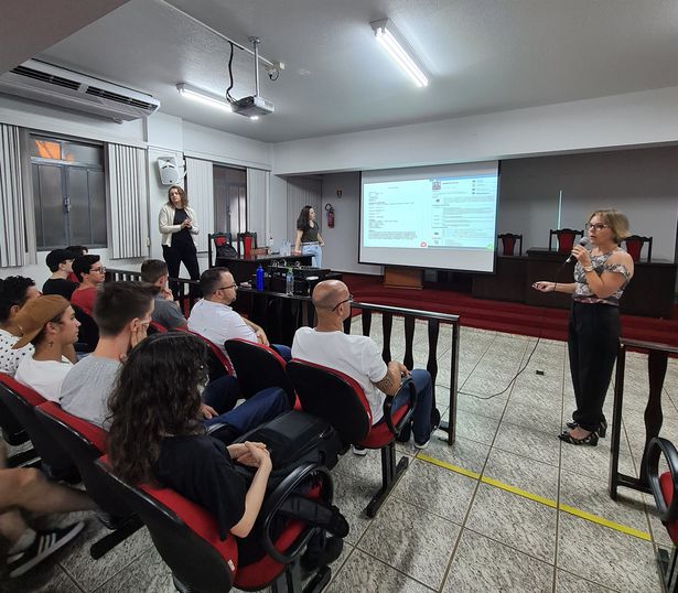 A abertura foi conduzida pelo coordenador do curso, professor Fernando Botelho, que apresentou a convidada da noite, a consultora em gestão de pessoas Fabiana Poletti, que compartilhou sua experiência de mais de 20 anos na área, e as recrutadoras que compõem sua equipe, Gilvana Melo e Thuany Breda. O tema abordado foi ‘Carreira de TI: skills e currículo'.