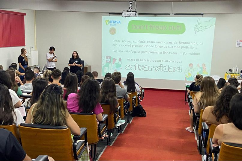 Após um momento de interação durante o coffee break, a IFMSA Brasil - International Federation Of Medical Students’ Association da UNIPAR apresentou seus objetivos e atividades, além de orientar os calouros sobre como participar e contribuir.