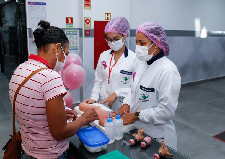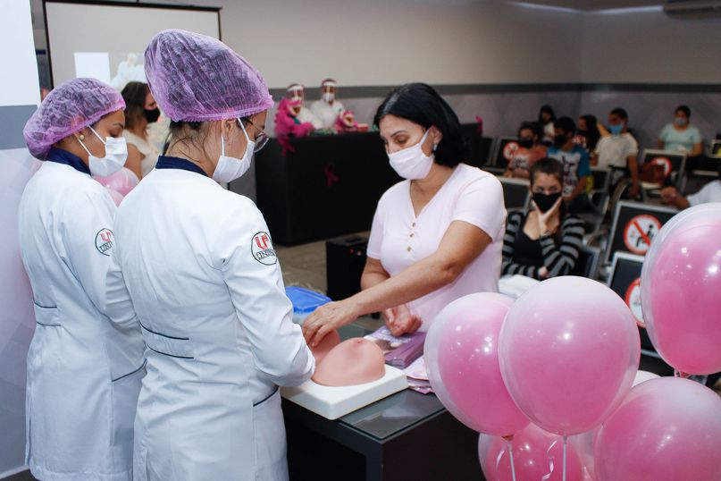 Contando com a parceria do curso de Enfermagem, o evento incluiu na pauta momentos de reflexão, quando acadêmicos ensinaram sobre o autoexame de mamas e prevenção do câncer de mama e do colo do útero. Isso aconteceu antes dos atendimentos, em horário de espera.