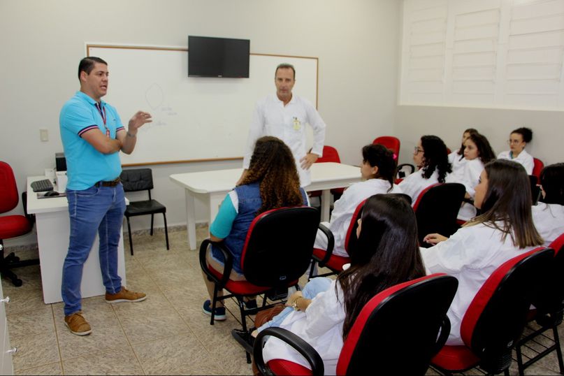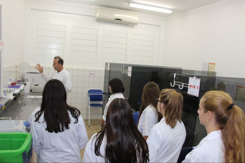 Recepcionada pelo coordenador do curso, professor Douglas Rossi, a turma também recebeu informações relacionadas ao funcionamento do laboratório, como procedimentos laboratoriais, pacientes atendidos, coleta de amostras, realização de exames e liberação dos laudos. As orientações foram repassadas pelo coordenador do laboratório, bioquímico Wilson Aguiar.