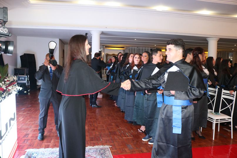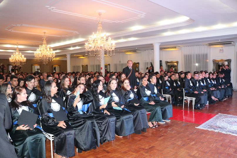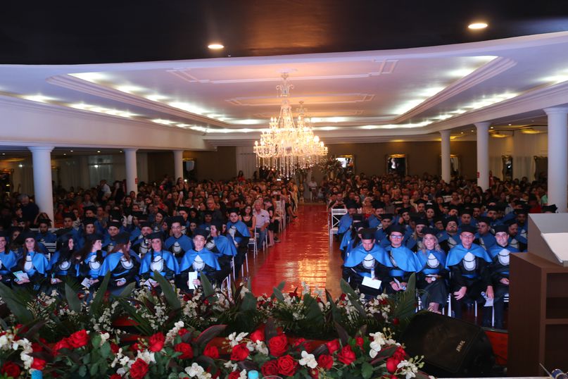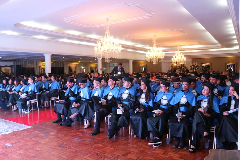 Professores, familiares, amigos e autoridades prestigiaram e aplaudiram os novos profissionais. Subiram ao palco as turmas de Administração, Estética e Cosmética, Farmácia, Sistemas de Informação, Arquitetura e Urbanismo, Engenharia Civil e Direito.