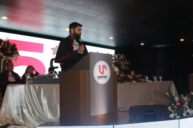 Paraninfo: As turmas de Administração, Estética e Cosmética, Farmácia e Sistemas de Informação escolheram a professora Paola Oliveira de Moraes; Arquitetura e Urbanismo e Engenharia Civil, o professor José de Oliveira Filho, diretor executivo da Dinâmica Universitária da Unipar-Sede; e Direito, professor Riquiel Garcia Dias