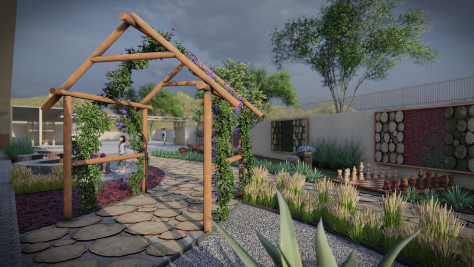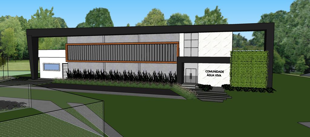 Assim como na escola, o Escritório Modelo está desenvolvendo o projeto de revitalização para o pavilhão comunitário da Vila Rural Água Viva, situado no interior do município. O espaço construído ganhará melhorias, prevendo alterações na fachada e ambientes internos, como adequações dos banheiros, salão de eventos e a ampliação de um ambiente destinado ao clube de mães. Também está sendo trabalhado o paisagismo do pórtico de entrada para destacar o acesso da vila e no entorno do pavilhão, oportunizando mais integração aos moradores.