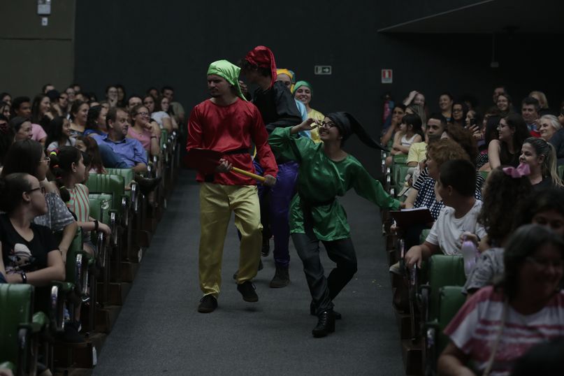A atuação também foi muito boa! As gargalhadas estridentes das bruxas da ‘escola das maldades’ no palco arrancavam risadas espontâneas na plateia. E teve muitos ‘oooh!’ para a delicada bruxinha boa, que acabou sendo presa na torre de piche.