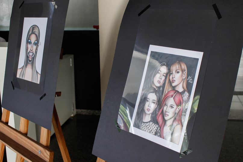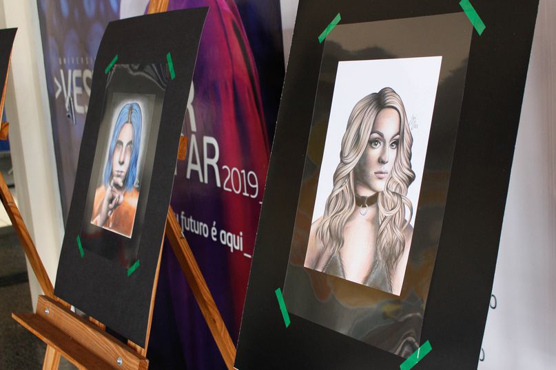 O material usado na pintura dos retratos foram papel canson, lápis de cor, caneta, lápis grafite e tintas, que são usadas para alcançar outros tipos de tons que o lápis colorido convencional não é capaz de chegar.