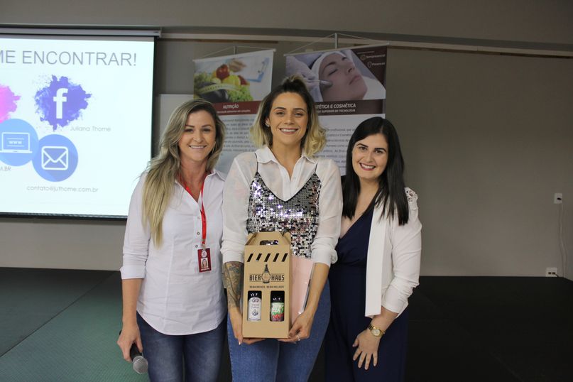 Ao final, foi feito sorteio de brindes, doados por empresas parceiras e apoiadoras do evento: Mahogany, Contém 1 g, Equilibre Biocosméticos, Pensso Saudável, Fankhauser, Bio Extratus, Esotérica, Carpe Dien e Lillean Calçados, que promoveram na aula uma feira com exposição de produtos.