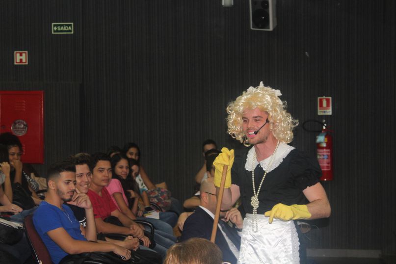 O evento integrou os cursos de Administração, Arquitetura e Urbanismo, Engenharia Civil, Estética e Cosmética, Direito, Farmácia e Sistemas de Informação. Com estilo descontraído e irreverente, o ator usou e abusou das técnicas ao interpretar uma personagem cômica, tudo com intuito de motivar a plateia, que deu muitas risadas. Ele também falou de temas instigantes, propícios com a situação de ingresso dos calouros na vida universitária.