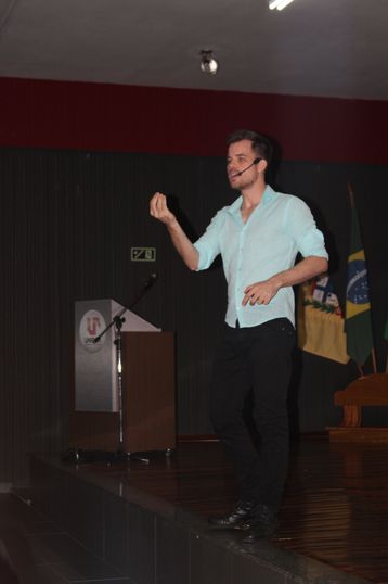 A palestra teve ainda exibição de slides, vídeos e dinâmicas interativas, com o palestrante suscitando assuntos como as definições do ser humano, os valores morais, por meio de metáforas que provocaram reflexão no público.