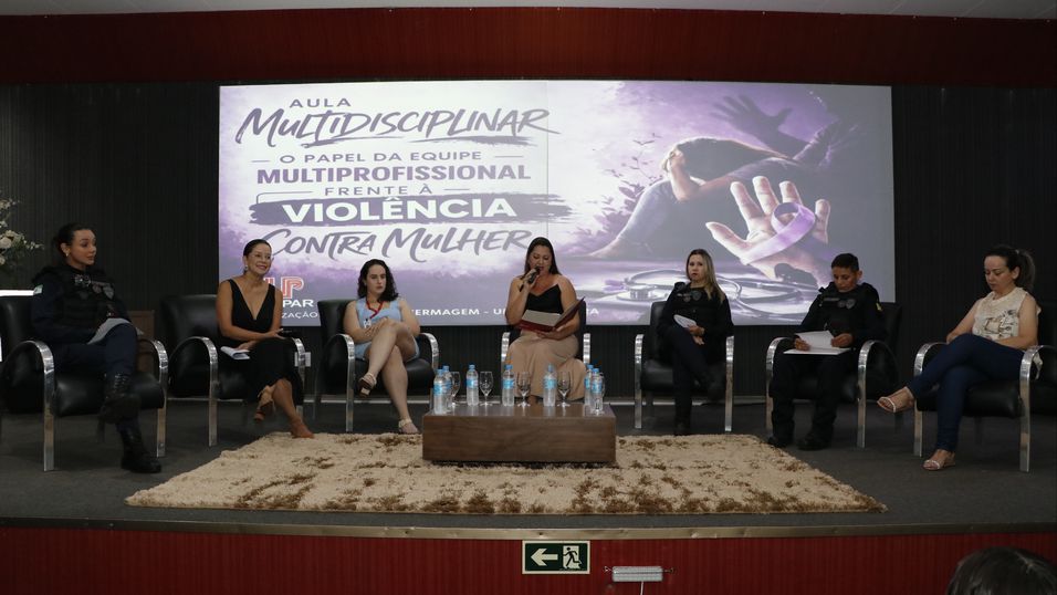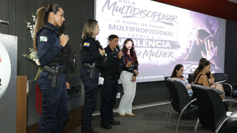 A mesa-redonda foi mediada pelas professoras Franciele Lopes, do curso de Enfermagem, e Rafaela Tavares, do curso de Psicologia. O debate contou com a participação de representantes de diferentes órgãos que integram a rede de proteção do município. Entre eles, a Patrulha Maria da Penha, da Guarda Municipal de Guaíra, que apresentou o trabalho ostensivo e de fiscalização das medidas protetivas; a vereadora Cristiane Giangarelli, representando a Procuradoria da Mulher da Câmara de Vereadores, que abordou as políticas públicas e o suporte legislativo; e a enfermeira Silmara Curtz, da Vigilância Epidemiológica de Guaíra, que detalhou os protocolos de notificação e os procedimentos de cuidado em saúde.