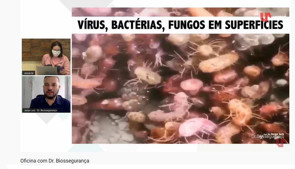 Em sua palestra, que durou cerca de duas horas, discorreu sobre ‘desenvolvimento da percepção do invisível’, ‘riscos ocupacionais’, ‘prevenção da covid-19 e outras infecções’, ‘limpeza, desinfecção e esterilização de superfícies, materiais e ambientes’, ‘higienização das mãos’, entre outros temas.