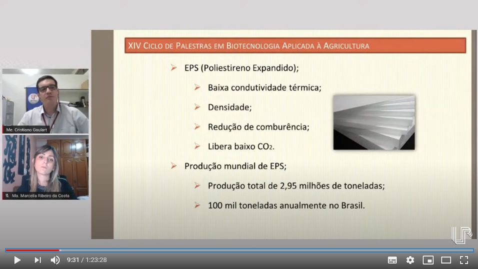No Ciclo de Palestras, mediado pela professora Juliane do Valle, o primeiro tema discutido foi ‘Biocompósitos para substituição de isopor na construção civil’, ministrado pelos professores da Unipar, Giani Colauto e Everlei Câmara, e os doutorandos do programa, Marcella Ribeiro e Cristiano Goulart.