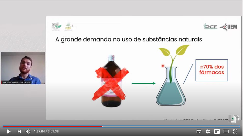 Outro tema que entrou na pauta do Simpósio foi ‘Química verde: biotecnologia vegetal na bioprodução de substâncias e produtos’, com o professor Everton Santos, da UEM, que destacou os processos para obtenção de princípios ativos ‘verdes’ e a aplicação destas biomoléculas no desenvolvimento de produtos.