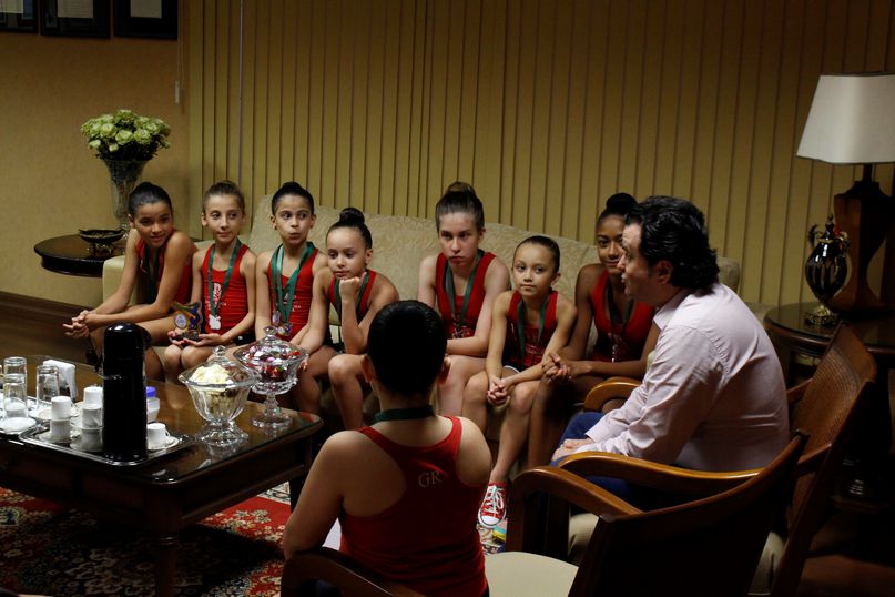 Para uma conversa afetiva e incentivadora, o Reitor Carlos Eduardo Garcia recebeu as meninas que fazem parte do grupo de competição em ginástica rítmica da Universidade Paranaense. O encontro foi na Reitoria, com direito a uma recepção especial, regada a biscoito e suco.