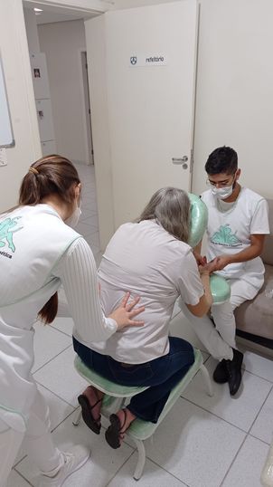 O Hospital Uopeccan foi um deles, e por lá 60 pessoas foram atendidas com massagem na cadeira Quick e hidratação das mãos. Os procedimentos foram feitos pelos alunos do 1º, 2º e 3º ano da graduação.