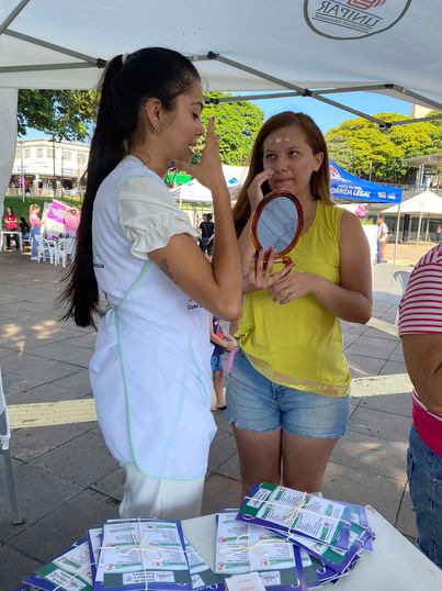 Nessas ações, o público feminino foi atendido com procedimentos de análise facial com o skinup e orientações sobre o uso do protetor solar e quick massage com hidratação das mãos. Acadêmicas do 1º ao 3º ano da graduação presencial e semipresencial realizaram as práticas com as mulheres, sob a supervisão da responsável técnica Géssica Gonçalves Chagas.