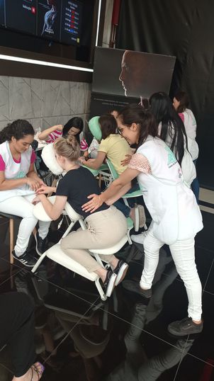 No Shopping Palladium, em uma parceria com o Sicredi, Hospital Uopeccan e Vialaser, acadêmicos (1º, 2º e 3º anos) atenderam colaboradores do shopping, correntistas do banco e comunidade externa – cerca de 50 pessoas – com massagem na cadeira quick e spa das mãos.