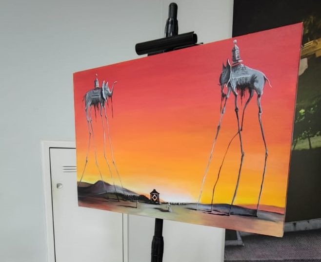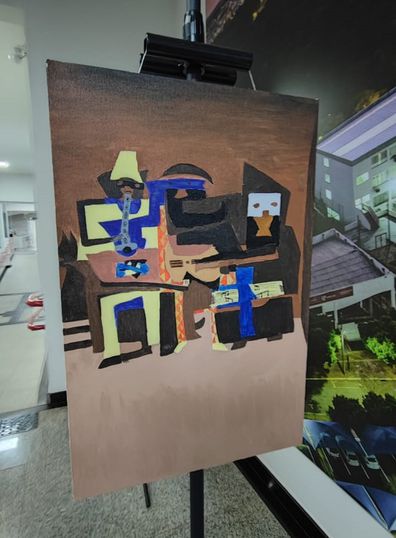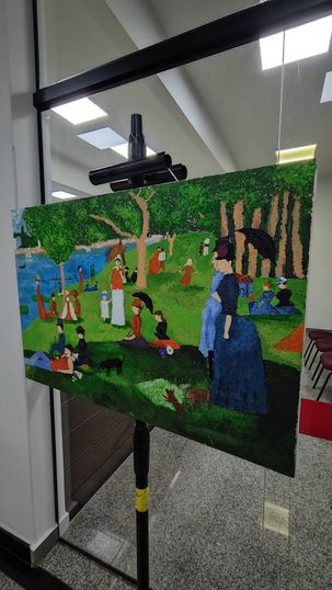 A técnica utilizada é a de pintura livre, mas mantendo as características da obra de arte que os inspirou. Os alunos também entregaram a descrição do trabalho original e o período histórico em que foi desenvolvido.