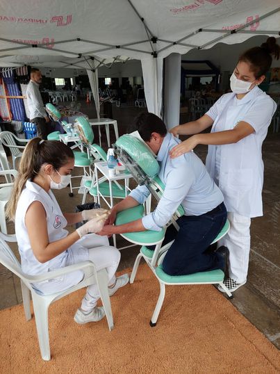 E, no dia 10 de março, a participação foi no evento Paraná em Ação, na cidade de Terra Boa, oferecendo aos visitantes e voluntários massagem e hidratação para as mãos.