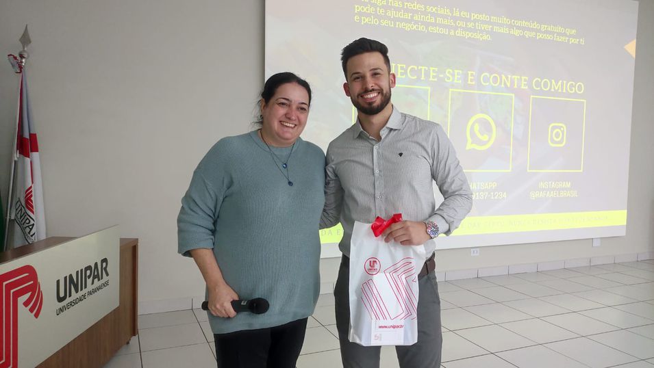 No Dia do Estudante (11/08), os acadêmicos do curso de Processos Gerenciais da Universidade Paranaense – Unipar/Cianorte, acompanharam uma palestra sobre Marketing Gastronômico, conduzida pelo egresso Rafael Brasil, fundador da Mesa 4 Marketing Gastronômico, uma agência especializada em negócios gastronômicos que atua com criação de conteúdo e gestão das redes sociais dos clientes, com foco no aumento das vendas e ajudando empresas a se posicionarem com mais autoridade no mercado.