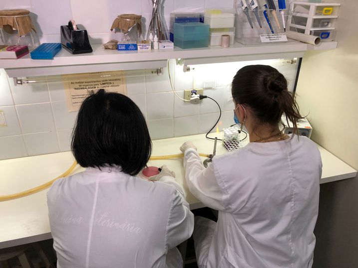 O objetivo é avaliar a eficácia de uma máquina de lavagem de carcaças na pré-escalda, bem como a adição de produtos na água do tanque, na redução das contaminações bacterianas nas aves. “Quando o animal vem da granja para o abate no frigorífico, pode trazer sujidades em suas patas e penas. Isso acontece devido às etapas de manejo: jejum, apanha e transporte. Assim, ele pode carregar esses microrganismos, por vezes, até patogênicos, para dentro das plantas de abate, promovendo contaminações significativas”, explicou a doutoranda, que está usando a estrutura de um frigorífico da região para as suas pesquisas.
