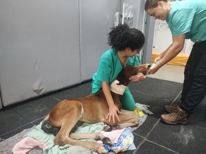 A equipe conta, ainda, com o auxílio do senhor Maurílio, responsável pelos cuidados de enfermagem, alimentação e limpeza das baias, onde permanecem os pacientes em regime de internação.