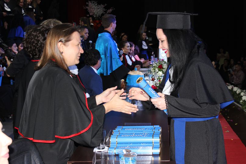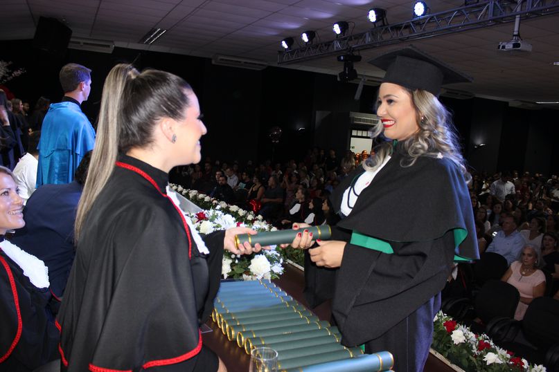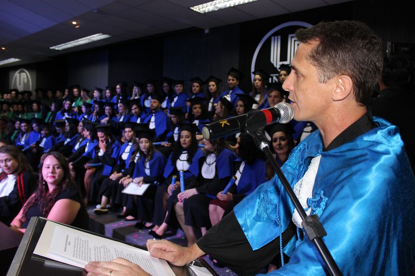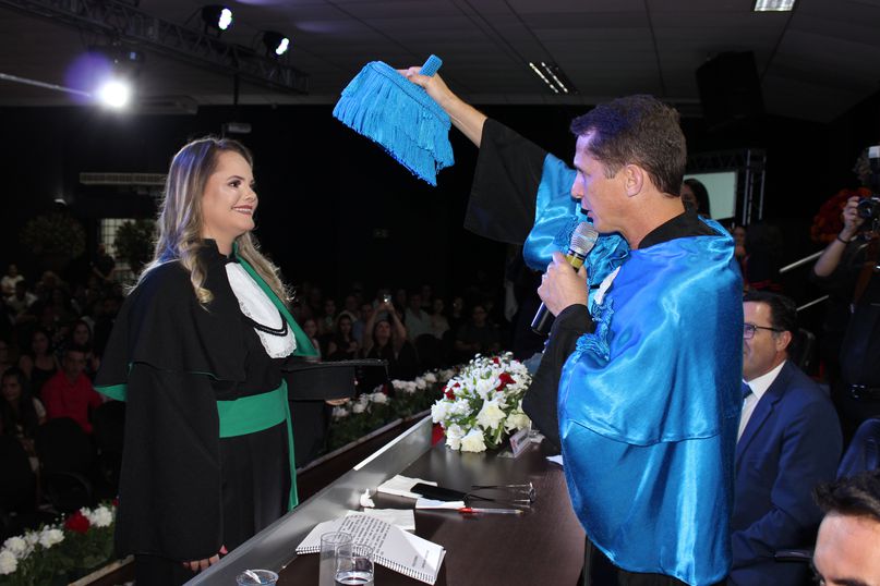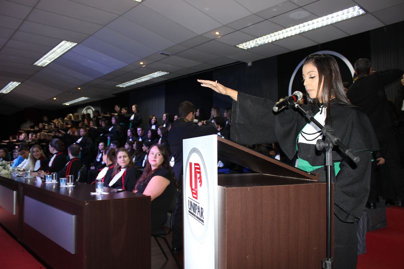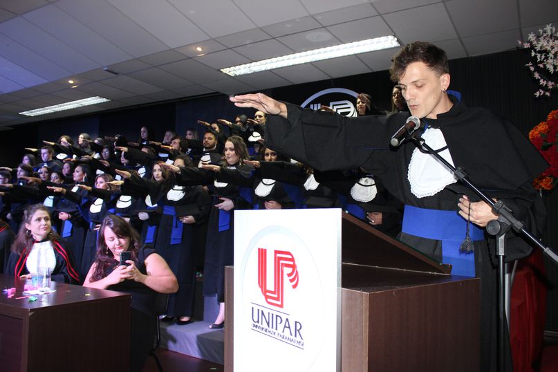 Outro momento foi o juramento profissional. Da tribuna, a formanda Letícia Xavier proferiu o juramento do tecnólogo em Estética e Cosmética, e Guilherme Apel, do bacharel em Psicologia. Para orador das turmas foi convidada a psicóloga Lauana Pereira.