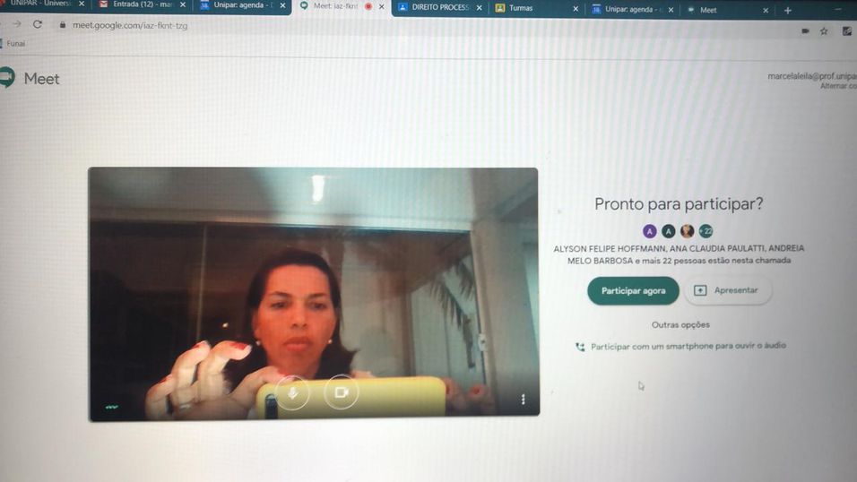 Outra ferramenta muito eficaz é o Google meet, que possibilita as webconferências ao vivo entre professor e aluno. A interação virtual e conjugação das ferramentas tornaram-se habituais aos alunos da Unipar, que mesmo em momentos de quarentena podem interagir ao vivo com seu professor e com colegas.
