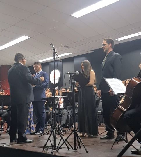 No palco, também estiveram os solistas Michele Coelho e Maria Arzamendia (sopranos), Matheus Bressan (tenor), Marcelo Campagnaro (baixo), Marcos Aquino (oboísta) e Alveri Cruz (clarinetista).