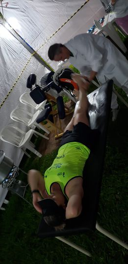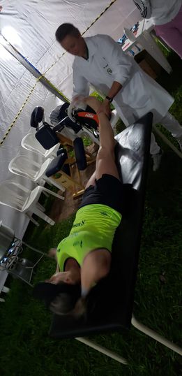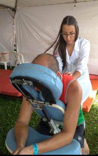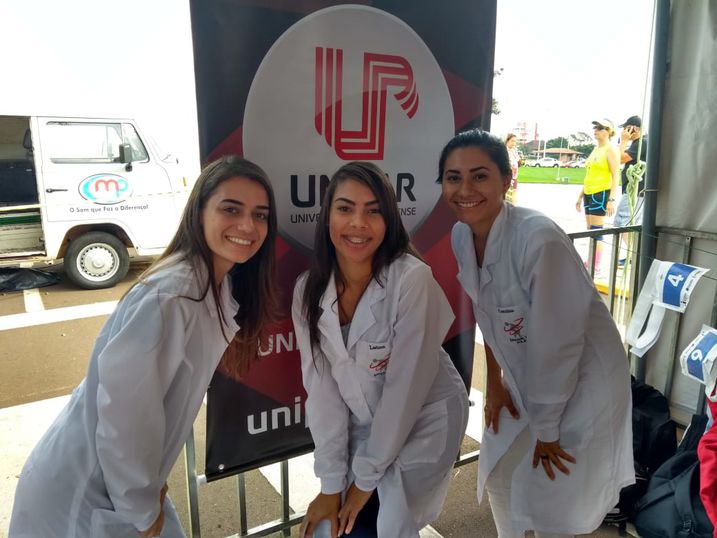 Educação Física auxiliou na organização e execução da prova, Fisioterapia preparou os atletas com alongamento e Estética propiciou momentos de relaxamento com massagem