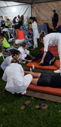 O trabalho de preparação, aquecimento e alongamento dos atletas ficou a cargo da equipe de Fisioterapia, que, ao final, também avaliou a presença de possíveis lesões nos competidores. Já a equipe de Estética e Cosmética relaxou os atletas com massagem.