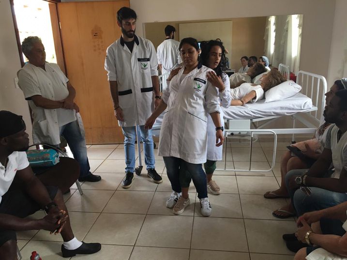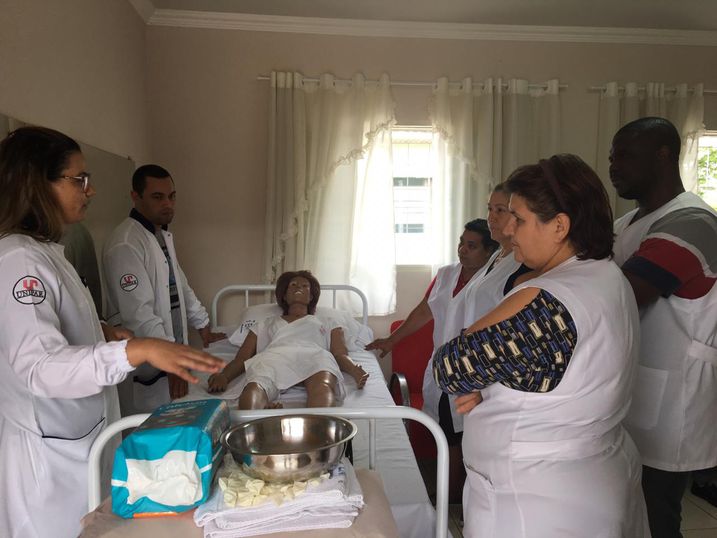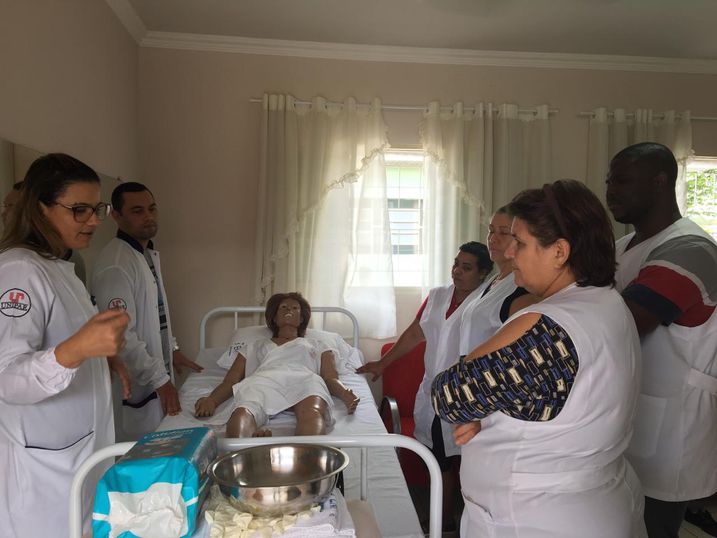 Supervisionados pela professora Bárbara Liberati, que ministra a disciplina de Cuidado ao Idoso no Processo Saúde Doença, os acadêmicos abordaram sobre os cuidados básicos de enfermagem com o idoso, visando proporcionar uma assistência de qualidade aos idosos que moram na entidade. Na parte prática, foi realizada uma demonstração com a utilização de bonecos de simulação.
