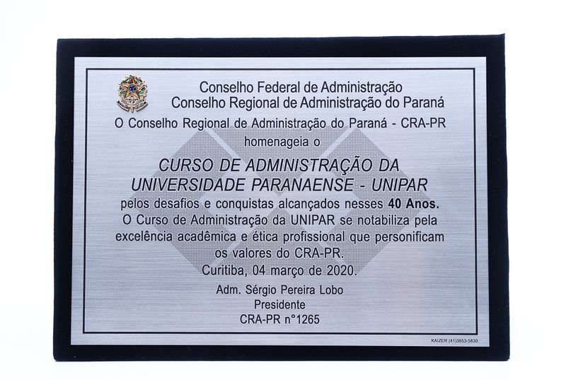 Outro assunto abordado pelo convidado da noite foi sobre a função do Conselho e o valor que o órgão tem para aqueles que exercem a profissão. Ao final, em nome do CRA-PR, Dorl entregou ao coordenador do curso da Unipar, professor João Codato, uma placa em homenagem aos 40 anos da graduação.