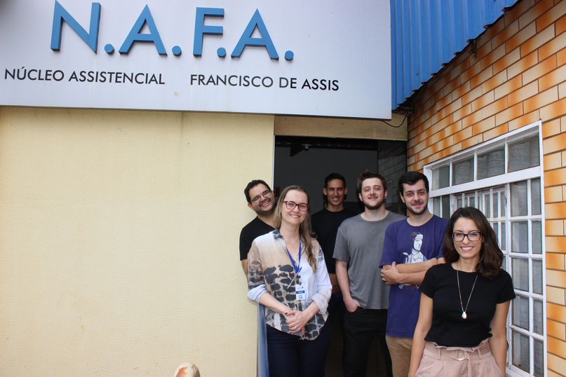 Outra ação importante partiu do projeto de extensão Arquitetando Solidariedade, coordenado pela professora Deborah e pela coordenadora do curso de Engenharia Civil, professora Neusa Beltrame. Mais de trinta cestas básicas foram doadas por acadêmicos, contemplando a comunidade via Nafa (Núcleo Assistencial Francisco de Assis). Na entrega, também estiveram presentes o professor Emerson Santos e acadêmicos.