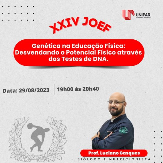 29/08 – Genética na Educação Física: Desvendando o potencial físico através dos testes de DNA, com o professor Dr. Luciano Gasques;