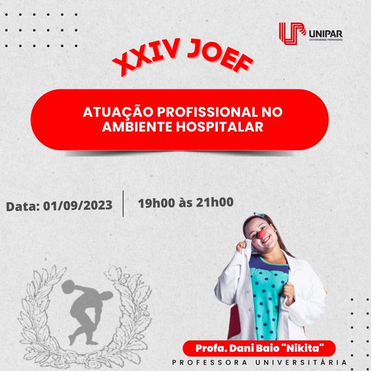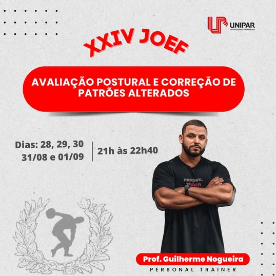 Já começou e vai até sexta-feira (01/09), a 24ª Jornada Acadêmica do curso de Educação Física (JOEF) da Universidade Paranaense – Unipar/Umuarama.