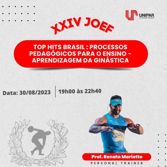 30/08 – Top Hits Brasil: Processos pedagógicos para o ensino-aprendizagem da ginástica, com o personal trainer Renato Mariotto;
