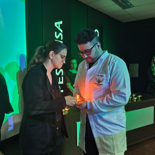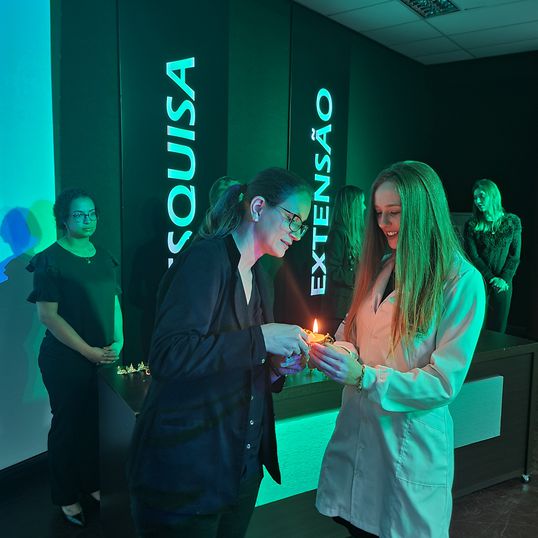 Outro momento aguardado foi a Passagem da Lâmpada, que remete ao compromisso dos futuros enfermeiros de manter acesa a chama da busca constante pelo conhecimento científico e a responsabilidade de acolher e cuidar do ser humano.
