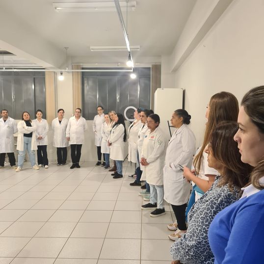 Os professores Rodrigo Leite, Sharon Ditzel e Michelle Scanagatta, e a coordenadora pedagógica Zenaide Vasselai, acompanharam a visita. Leite, que é coordenador do curso de Farmácia, ressalta que o objetivo da visita é estabelecer uma parceria técnica e compartilhar conhecimentos.