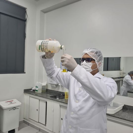 Turma faz manipulação de cosméticos no laboratório de Farmacologia, sob orientação da professora Milena Lorencete