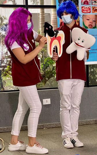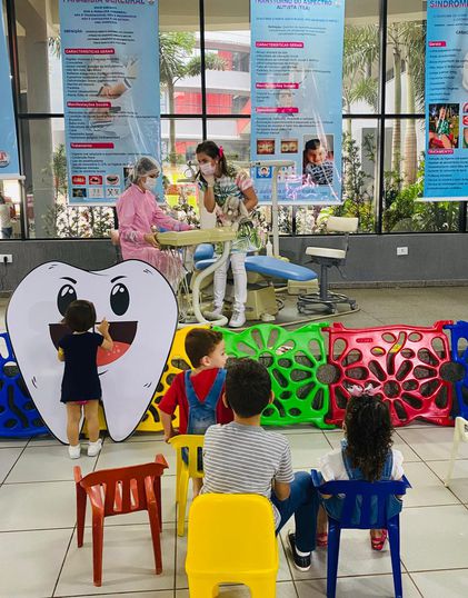 Para isso, um circuito de conhecimentos foi montado no Pátio das Colunas, em que os alunos puderam expor em detalhes itens para escovação adequada, composição dos dentes, alimentos cariogênicos, prática de escovação correta, enfim, informações diversas acerca da odontologia pediátrica, já que ação foi alusiva ao Dia das Crianças. Teve até teatro e apresentação com dedoches.