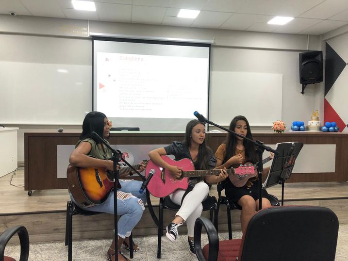 - Apresentação musical (violão, culelê e vocal), com as acadêmicas da Hemylly, Sâmela e Sheila, que ao final também contribuíram na canção dos parabéns aos 50 anos da Pedagogia Unipar.