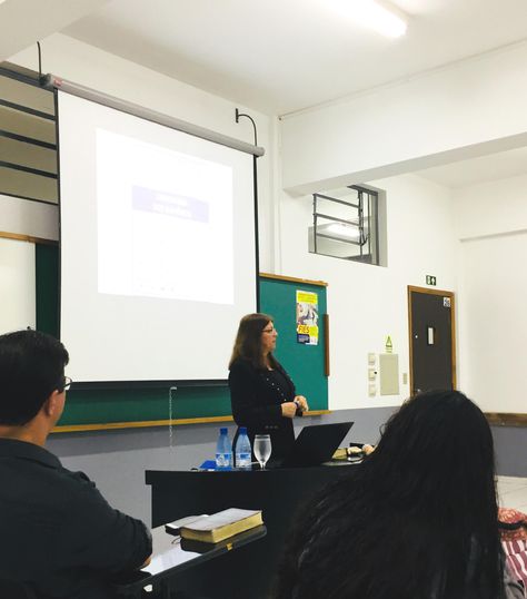 Graduada em Letras, Teologia e Serviço Social, a professora falou sobre o período da Igreja Cristã Primitiva, assunto do qual ela é especialista. A aula fez parte da disciplina de História da Educação.