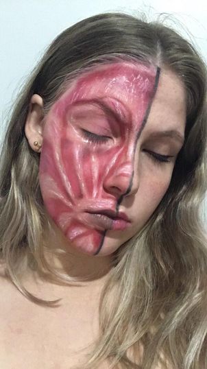 A atividade, lançada pela professora Letícia Nadal, consistia em realizar uma pintura em face, representando os músculos da expressão facial. A ideia, já que as práticas estão sendo aguardadas para o retorno das aulas presenciais, foi promover uma tarefa para que os estudantes pudessem aplicar os conhecimentos teóricos das aulas on-line, entendendo a mímica facial e os movimentos dos músculos durante as expressões faciais.