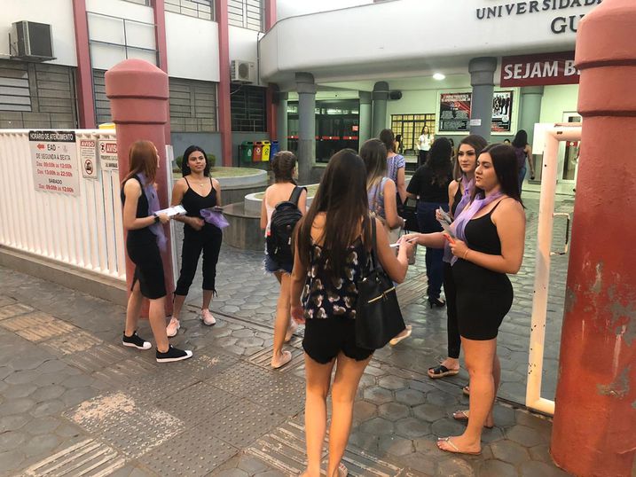 Em Guaíra A data foi marcada por uma campanha de prevenção e conscientização sobre violência contra mulheres, encabeçada por acadêmicas do 3º ano do curso Enfermagem, sob a supervisão da professora Simone Mickos. O grupo entregou aos estudantes e funcionários da Unipar folder explicativo sobre a violência contra mulheres, além de exibir vídeo educativo no intervalo das aulas. As alunas estavam caracterizadas com roupa preta e lenço lilás, cor da campanha do mês das mulheres, e algumas com maquiagem simulando estarem agredidas fisicamente. Em alusão ao mês da mulher, outra ação está acontecendo no Pronto Atendimento Ambulatorial de Enfermagem (PAAE) da Unipar em parceria com a Secretaria de Saúde, onde foram intensificados os atendimentos voltados para a saúde da mulher. A campanha ocorrerá durante todo mês de março e dentre as atividades já desenvolvidas cabe destacar a ação que envolveu outro grupo de estudantes do curso de Enfermagem. Acompanhando a enfermeira Paloma Thainá e a ginecologista Larissa, eles ministraram palestras e orientações de enfermagem.